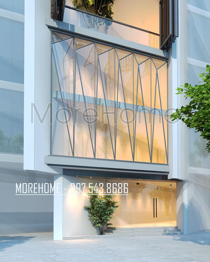 Toàn bộ mặt trước của ngôi nhà được Morehome thiết kế bao phủ bằng mặt kính theo đường nét nghệ thuật. Tạo nên những điểm nhấn nhất định, nhìn từ bên ngoài mọi người hoàn toàn có thể thấy được lối kiến trúc mới lạ của ngôi nhà phố 4 tầng hiện đại này.Chúng tôi chắc chắn rằng, bất cứ ai đi ngang qua đây cũng sẽ bị thu hút bởi kiến trúc thiết kế độc đáo và lạ mắt này.